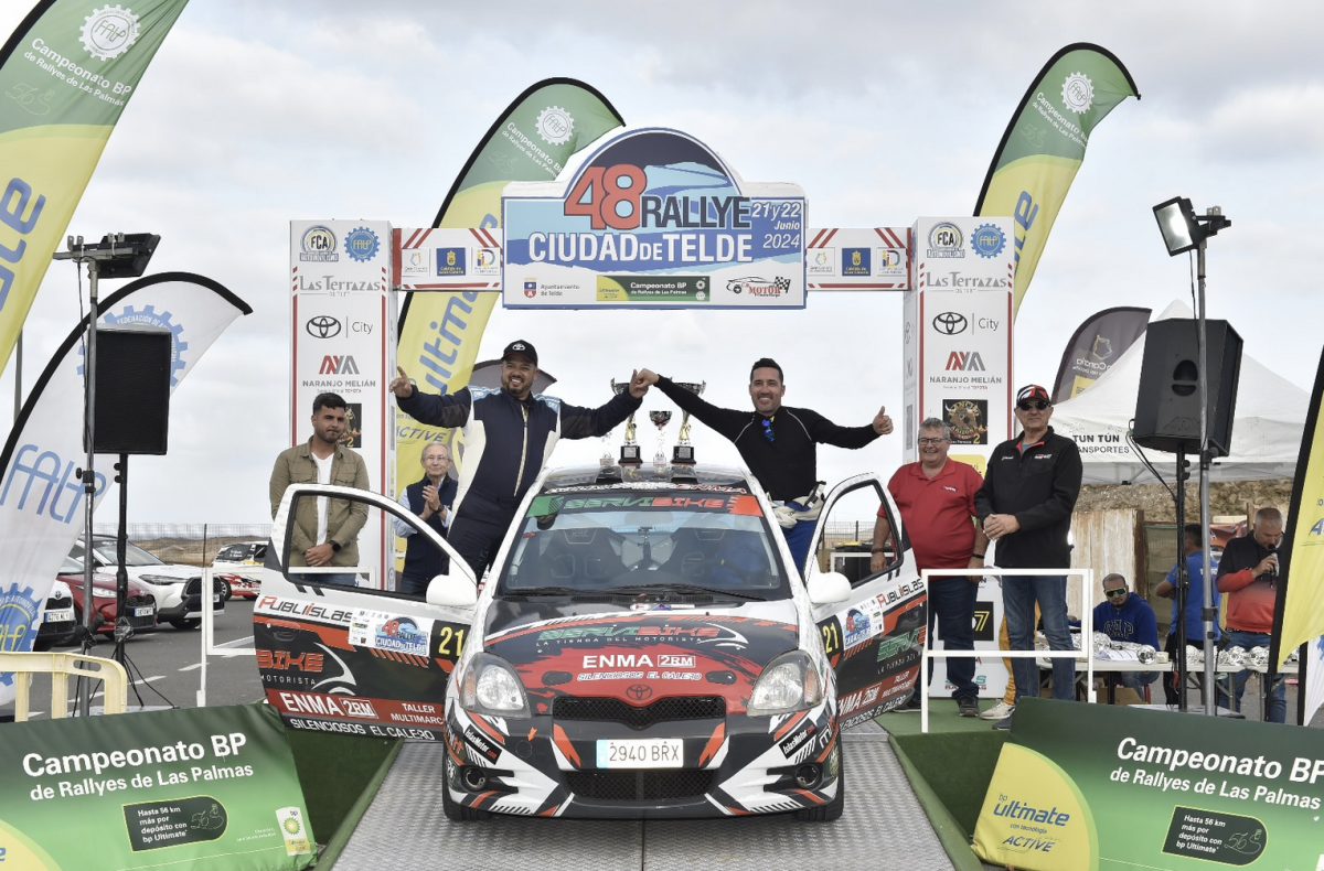 Los grancanarios Acorán Navarro y Omar Godinho son más líderes del Trofeo Toyota Enma 2RM tras lograr la victoria en este apartado en el Rally Ciudad de Telde.