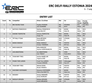 Publicamos la lista de inscritos del Delfi Rally Estonia, cita del Campeonato de Europa de Rallys (ERC) 2024 que tendrá lugar en el 5 y 7 de julio.