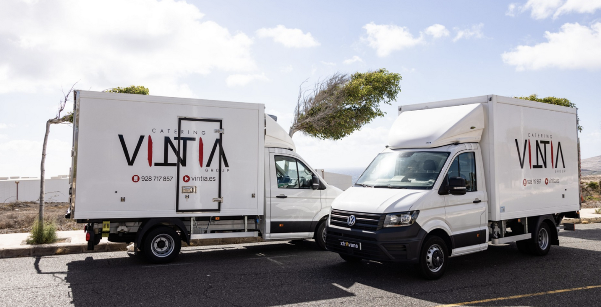 Estas nuevas unidades incorporadas a la flota de Vintia Group son el modelo Volkswagen Crafter Chasis con Caja y rampa, siendo una de ellas isotermizada con posibilidad de usar el equipo de frío en ruta y también conectado a la red eléctrica. Estos vehículos especializados proporcionarán a Vintia Group la capacidad de ofrecer un servicio de catering aún más eficiente y personalizado garantizando la máxima calidad de sus productos.