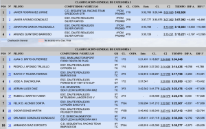 Gran ascensión para Adrián Lugo con su Seat León SuperCopa MK2, acabando quinto, seguido de Rubén Martín (Mitsubishi Lancer Evo V), Félix Dorta (Citroën Saxo VTS), Óscar Doniz (Peugeot 208 R2) y Orlando González (Seat León SuperCopa MK1), cerrando el top 10 Armando Díaz (BMW M3 E36).