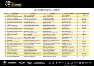 Publicamos la lista de inscritos del Rally Senderos de La Palma por orden alfabético. La prueba se disputará este viernes y sábado.