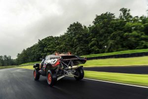 • Diseño todoterreno a medida: El vehículo, compuesto por un bastidor espacial de acero T45 y paneles de carrocería de fibra de carbono, combina funcionalidad con la estética característica del Ford Raptor, como una altura libre al suelo de 400 mm, una postura amplia para mejorar la estabilidad todoterreno y una parrilla cincelada con la inscripción FORD en la parte delantera, lo que ofrece tanto un aspecto llamativo como ventajas de rendimiento. El Ford Raptor T1+ tiene un peso mínimo de 2.010 kg, una anchura de 2.300 mm y un ángulo de aproximación de más de 70°.
