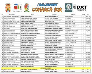 Publicamos la lista de inscritos del la primera edición del Rallysprint Comarca Sur, prueba que se disputará en la isla de Tenerife. Tres son los equipos que inicialmente parten con opciones al podio y a la victoria como son Ángel Bello – Miguel Reverón (Hyundai i20 R5), Pedro Javier Afonso – Javier Afonso (Citroën C3 Rally2) y Víctor Abre – Luis Rodríguez en su debut con su nuevo Citroën C3 Rally2.