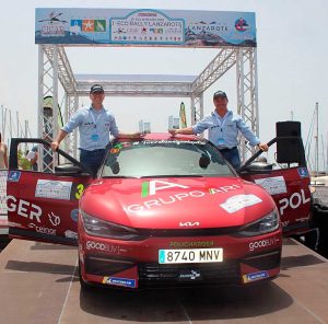 Tanto Kia Canarias, mi copiloto Salas, y yo con el respaldo de GRUPO ARI, hemos conseguido gracias a una exquisita organización de la Escudería Lanzarote y un vehículo como el Kia EV6 GT Line alzarnos con el primer puesto absoluto 100% eléctrico, en el I Eco Rallye Lanzarote.