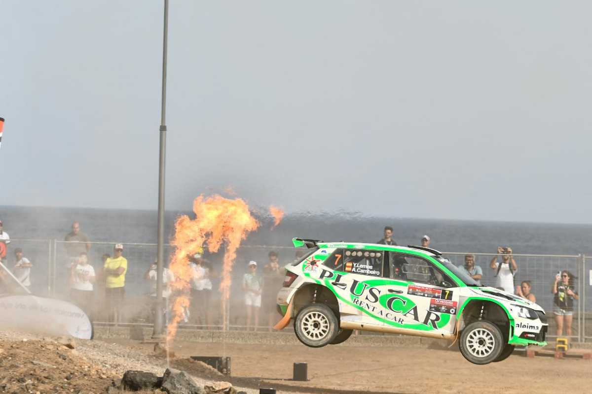Yeray Lemes y Aitor Cambeiro, esta vez con un Škoda Fabia R5, dormirán séptimos tras perder tiempo con dos errores en la primera vuelta por el recorrido capitalino. Borja Pérez y Rubén Pérez, empleando otra unidad Škoda Fabia R5, figuran en la octava posición y justo por delante de Juan Carlos Quintana-Jonathan Hernández (Ford Fiesta Rally2) y Gabriele Campagnoli-Nicola Arena (Hyundai i20 N Rally2).