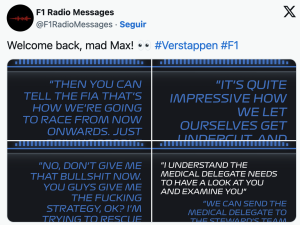 Su mala salida, donde salió por fuera y se dejo sobrepasar para no ser sancionado por parte de la FIA, unido a una estrategia de equipo errónea a su entender, le hizo estallar por radio con su equipo durante la carrera: “Me han dado una mierda de estrategia, ¿vale? ¿Me pueden dar una puta estrategia?, que estoy intentando salvar lo que hay».