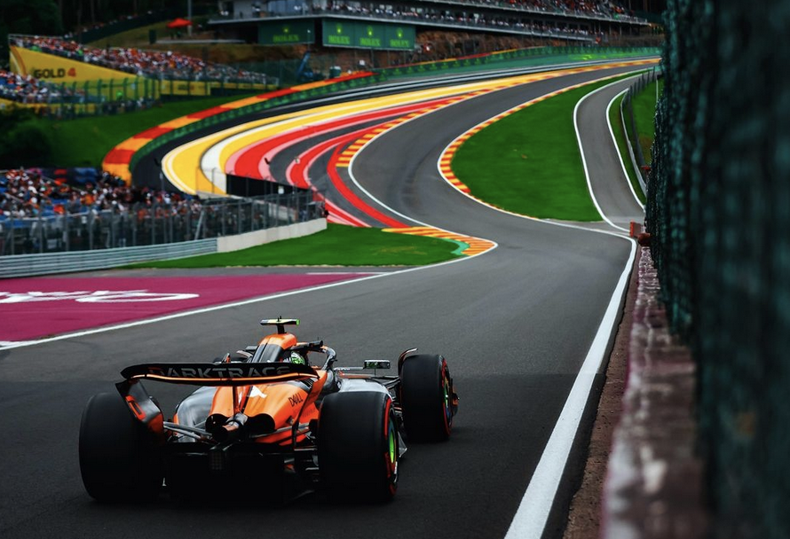 Norris, a la caza del Mundial, y Piastri, flamante campeón en Hungría, volvían a ponerse primero y segundo y Verstappen no llegaba a los tiempos ni del australiano, del que se quedó a dos milésimas, ni de un Norris que destrozó el crono sobre el renovado asfalto de Spa-Francorchamps, el más largo de la temporada con 7.004 metros.