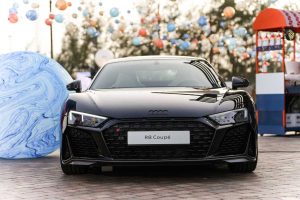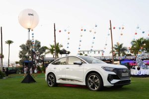 Antes de llegar al market gastronómico, los asistentes tuvieron la oportunidad de recorrer los diferentes espacios de los patrocinadores para descubrir las numerosas sorpresas que tenían preparadas. Como viene siendo habitual, el espectacular Hoyo Audi fue el punto de encuentro de cientos de personas que se acercaron para fotografiarse en el exclusivo espacio y recoger sus distintivas pulseras Audi. Una estructura que simulaba la superficie lunar y un logo Audi a gran escala que parecía alunizar llamó la atención de todos los asistentes. Tampoco pasó desapercibido el nuevo Audi Q6 e-tron allí expuesto, el nuevo modelo 100% eléctrico de la marca y la primera unidad llegada a Canarias, que cuenta con hasta 830 kilómetros de autonomía en ciudad y abre un nuevo capítulo para la movilidad eléctrica. Otros modelos que también estuvieron presentes fueron los superdeportivos Audi RS Q8 o el inconfundible Audi R8, símbolo de potencia y deportividad.