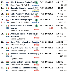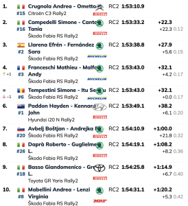Boštjan Avbelj, que fue el más rápido en el TC2, anotó sus primeros puntos del ERC en séptimo lugar y Roberto Daprà fue octavo en su primera salida en una rally del ERC con un coche de Rally2 después de ganar el título de ERC4 en 2023.