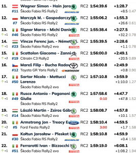 El doble campeón del ERC, Giandomenico Basso, terminó noveno y Andrea Mabellini completó el top 10 para el equipo MRF Tires, seguido por Simon Wagner, quien recientemente consiguió su cuarto título austriaco. Miko Marczyk, el campeón húngaro Ferenc Vincze y Giacomo Scattolon fueron los siguientes.