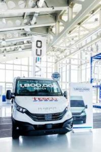 El vehículo hito 1.800.000 es la nueva eDaily, la gemela eléctrica de la icónica Daily, en versión cabina ensamblada en Suzzara y electrificada en la planta de Brescia.