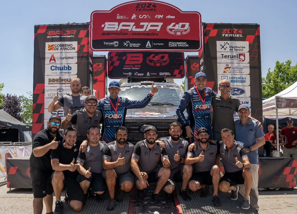 El equipo asturiano Past Racing celebra la victoria en el Campeonato de España Todo Terreno y el quinto puesto absoluto del piloto catalán Nani Roma en la Baja Aragón con el Ford Ranger T1.