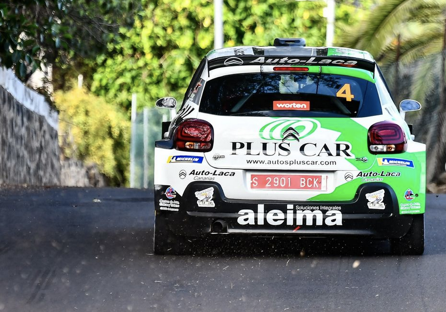 El lanzaroteño Yeray Lemes y su nuevo copiloto en el décimo Rally Ciudad de La Laguna, el gallego David Vázquez, lograron llevar el Citroën C3 Rally2 a la primera posición de la cita del Campeonato de Canarias de Rallys de Asfalto 2024.