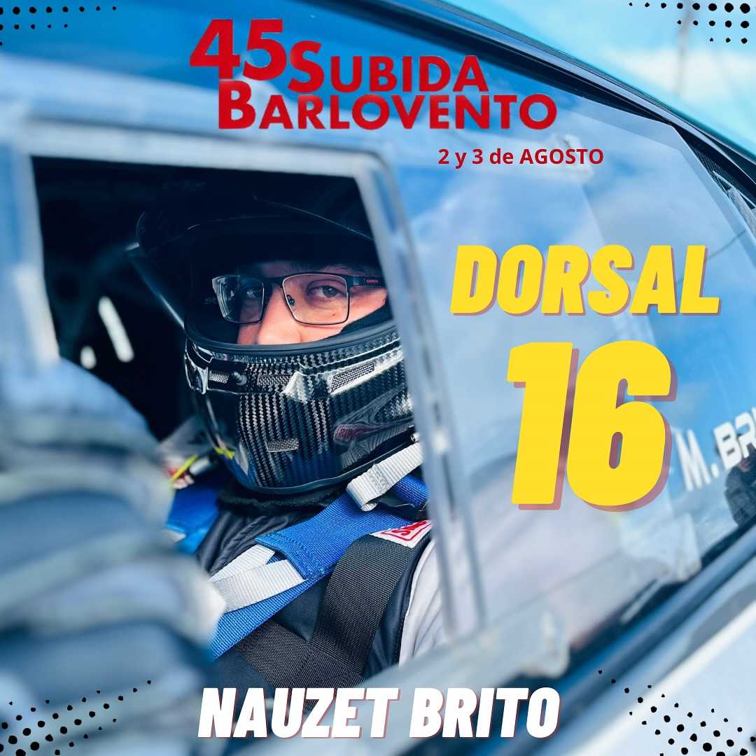 El tinerfeño Nauzet Brito buscará este sábado su cuarta victoria consecutiva en la Subida a Barlovento. En la temporada 2022 venció con el Porsche 991 Turbo y en la 2023 con el Lamborghini Huracán, esperando repetir con esta misma unidad en esta nueva edición de una prueba que logra congregar a miles de aficionados en la isla de La Palma.