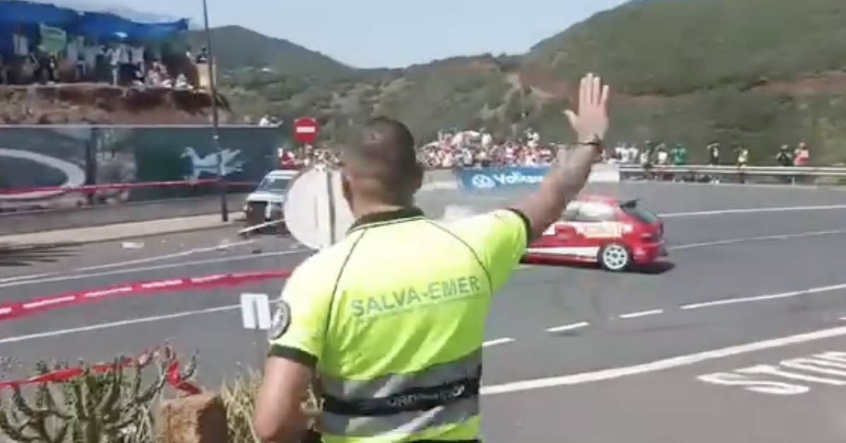 Todo ocurrió en la última curva, la siempre espectacular de la gasolinera, en el mismo pueblo de Barlovento, donde cada año se congregan miles de aficionados para disfrutar de las espectaculares trazadas que realizan los pilotos en los metros finales de una de las rampas más espectaculares y seguidas de toda Canarias.
