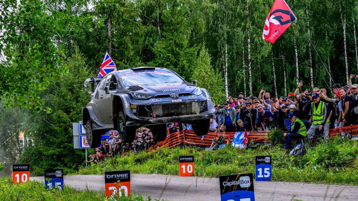 El rápido y frenético viernes finlandés se convirtió en un sábado de super velocidad con Rovanperä, Elfyn Evans y Ogier encabezando un triplete de Toyota esta mañana. Pero todo se torció para Evans cuando el eje delantero derecho de su coche se rompió en el rapidísimo tramos de Päijälä, lo que le obligó a superar unos 40 kilómetros de tramos especiales en modo enlace, perdiendo casi seis minutos, antes de que se pudieran realizar las reparaciones en asistencia.