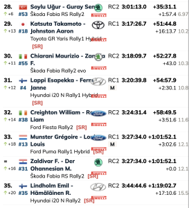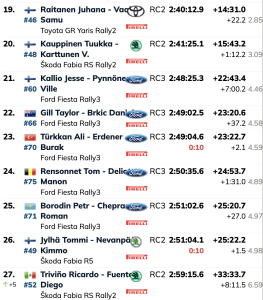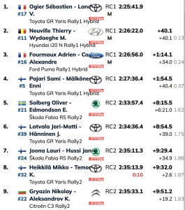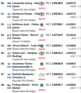 Los Rally2 completaron el resto de los 10 primeros puestos. Oliver Solberg ganó la categoría WRC2 y se colocó quinto en la general por delante de Jari-Matti Latvala, Lauri Joona, Mikko Heikkilä, Nikolay Gryazin y Georg Linnamäe.