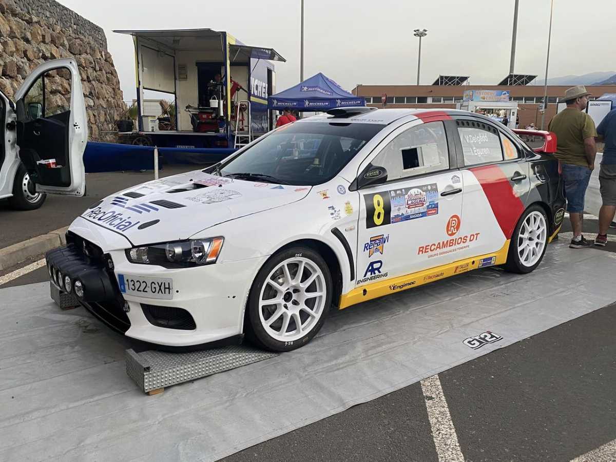 Los tinerfeños Víctor Delgado y Nacho Eguren, tan buenos deportistas como tan buenos amigos, lograron llevar el Mitsubishi Lancer Evo X a la meta del Rally Ciudad de La Laguna, algo que no habían podido lograr en los dos anteriores pruebas de 2024 que habían disputado.