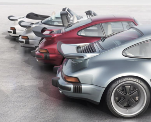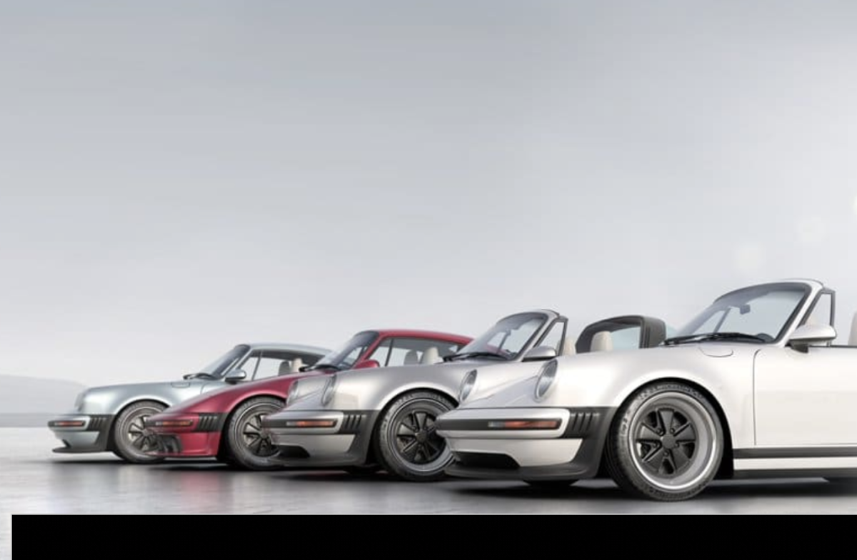Singer destacó el alcance de su colaboración con los propietarios a través de un retrato familiar que muestra cuatro Porsche 911 rediseñados para reflejar las preferencias individuales por los coches cupé, cupé inclinado, targa y cabriolet.
