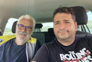 Hoy hace un mes que nos hicimos esta foto. Fue en Lanzarote, donde compartimos un par de días, un buen cachopo y donde nos despedimos pendiente de vernos en octubre, en Madrid.