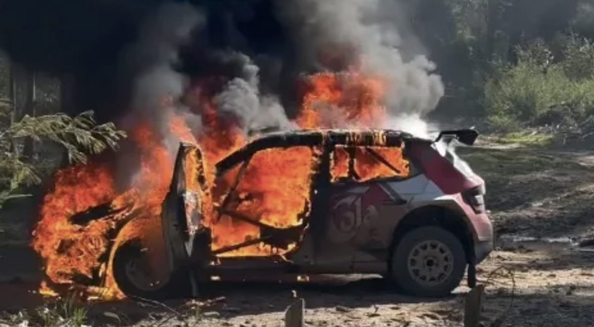 Durante la última etapa del campeonato chileno de rallyes, su Skoda Fabia Rally2 se incendió repentinamente, convirtiendo su carrera en una pesadilla. Afortunadamente, tanto el piloto como la copiloto lograron salvarse a tiempo, saliendo ilesos.