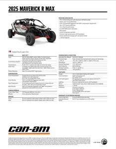 Desde su presentación el año pasado, el Maverick R ha cambiado el panorama del rendimiento lado a lado con un motor Rotax de 240 caballos de fuerza líder en la industria combinado con una transmisión de doble embrague (DCT), un diseño de suspensión de nudillos altos inigualable y corte- tecnología de punta. Para 2025, Can-Am llevará la experiencia Maverick R al siguiente nivel y compartirá la emoción del sendero con familiares y amigos con el Maverick R Max. Diseñado para la comodidad de los pasajeros, el Maverick R Max de cuatro asientos cuenta con los asientos traseros para pasajeros más espaciosos de su clase.