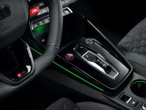 La zaga del modelo deportivo compacto también incluye referencias a la competición, con una presencia mucho más acentuada. Los reflectores laterales verticales dan continuidad al diseño de las tomas de aire de la parte delantera. El gran difusor funcional específico incorpora un reflector rojo en el centro y, en sus laterales, los dos embellecedores ovalados del sistema de escape RS, que parecen aún más grandes con sus marcos negros. Al igual que los faros delanteros, los pilotos traseros también cuentan con un nuevo grafismo: unas flechas que se iluminan dinámicamente de dentro hacia fuera con la función “coming home/ leaving home” ponen de manifiesto su diseño progresivo.