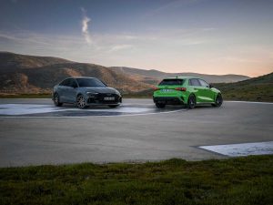 La tercera generación del RS 3 Sportback y la segunda generación del RS 3 Sedan se lanzaron en 2021. Con 400 CV y un aumento del par motor hasta 500 Nm, superaba a todos sus competidores en aceleración. Gracias al torque splitter, utilizado por primera vez en un Audi en sustitución del anterior diferencial con un embrague multidisco, se alcanzó también un nuevo nivel en términos de dinámica de conducción. Esto permitió al RS 3 conseguir varios premios internacionales, entre ellos el de Coche del Año 2022 de Top Gear en Italia, el de Mejor Coche Deportivo 2022 de Motor1 en Estados Unidos y victorias consecutivas en 2022 y 2023 en la elección de los lectores de sport auto en Alemania.