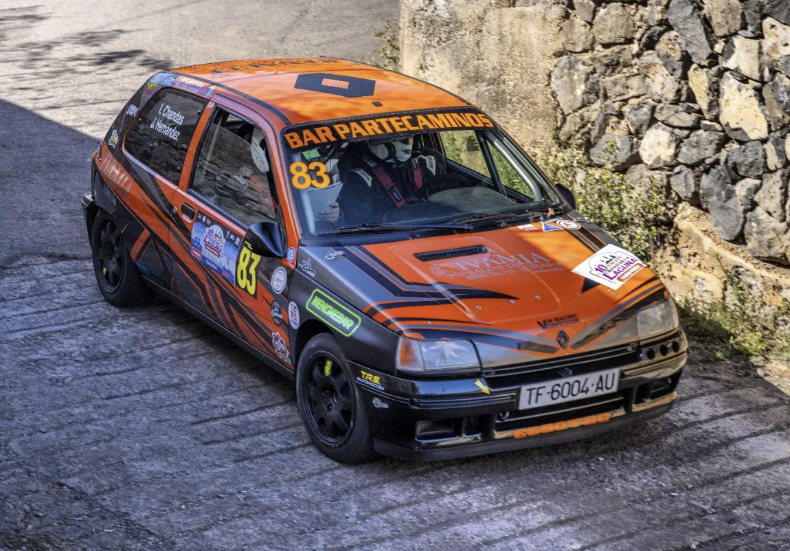 El piloto tinerfeño Iván Chandas no deja de maravillarse con su Renault Clio, unidad especial para celebrar que compara en un paso por una misma curva de su anterior propietario y en la actualidad.