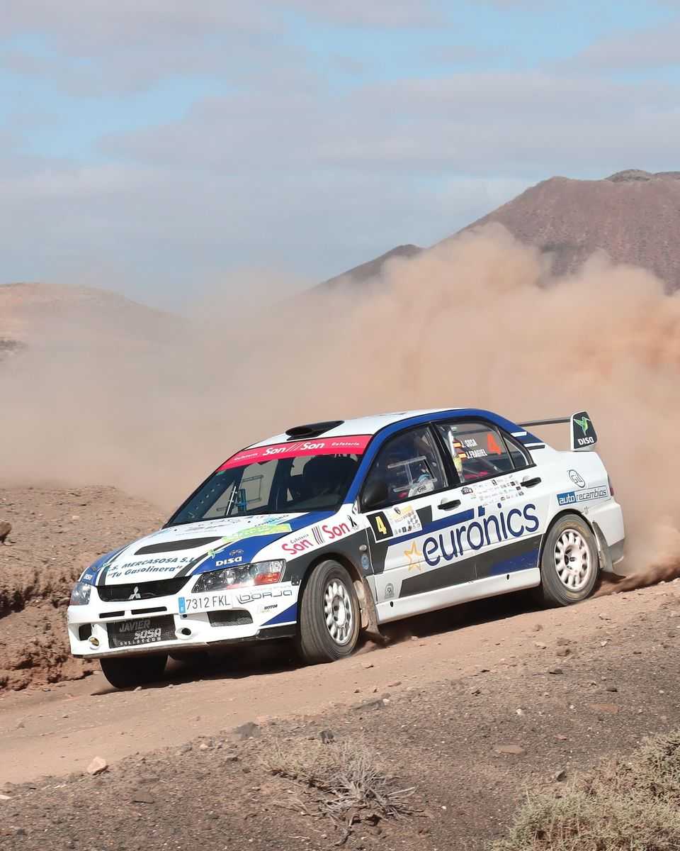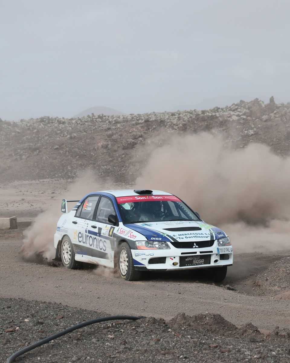 Gran arranque de Rally de Antigua para los majoreros Javier Sosa y Javier Fragiel, que a los mandos de su Mitsubishi Lancer Evo IX marcaban dos segundos mejores tiempos y un tercero en los tres primeros tramos cronometrado de la cita celebrada en la isla de Fuerteventura, situándose segundos. Pero en el cuarto tramo cronometrado todo cambió, sufriendo una fuerte salida de carretera que ha dejado muy dañado su montura y a ellos, bien en lo físico, fuera de la carrera. ¡Ánimos!