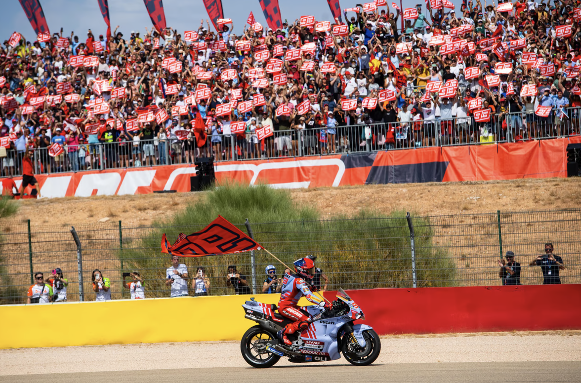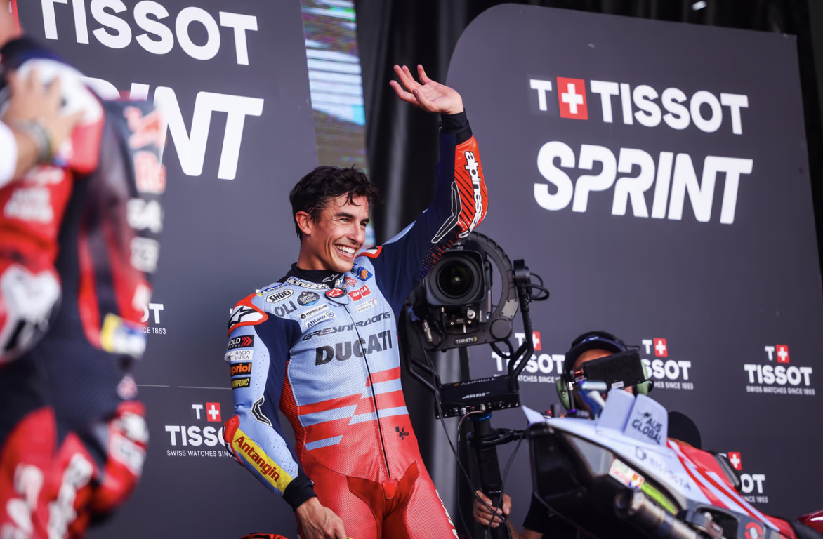 El dominio marcado por Marc Márquez durante las jornadas de entrenamientos se convirtió en la primera victoria del ocho veces campeón del mundo con Ducati. Marc Márquez se escapó desde que se apagaron las luces del semáforo en la Sprint Race del Gran Premio GoPro de Aragón y tan sólo Jorge Martín y Pedro Acosta lograron seguirle. Sin embargo, el ritmo del piloto del Gresini Racing fue superior y se impuso a sus dos compatriotas que completaron el podio para deleite de todas las gradas de MotorLand.