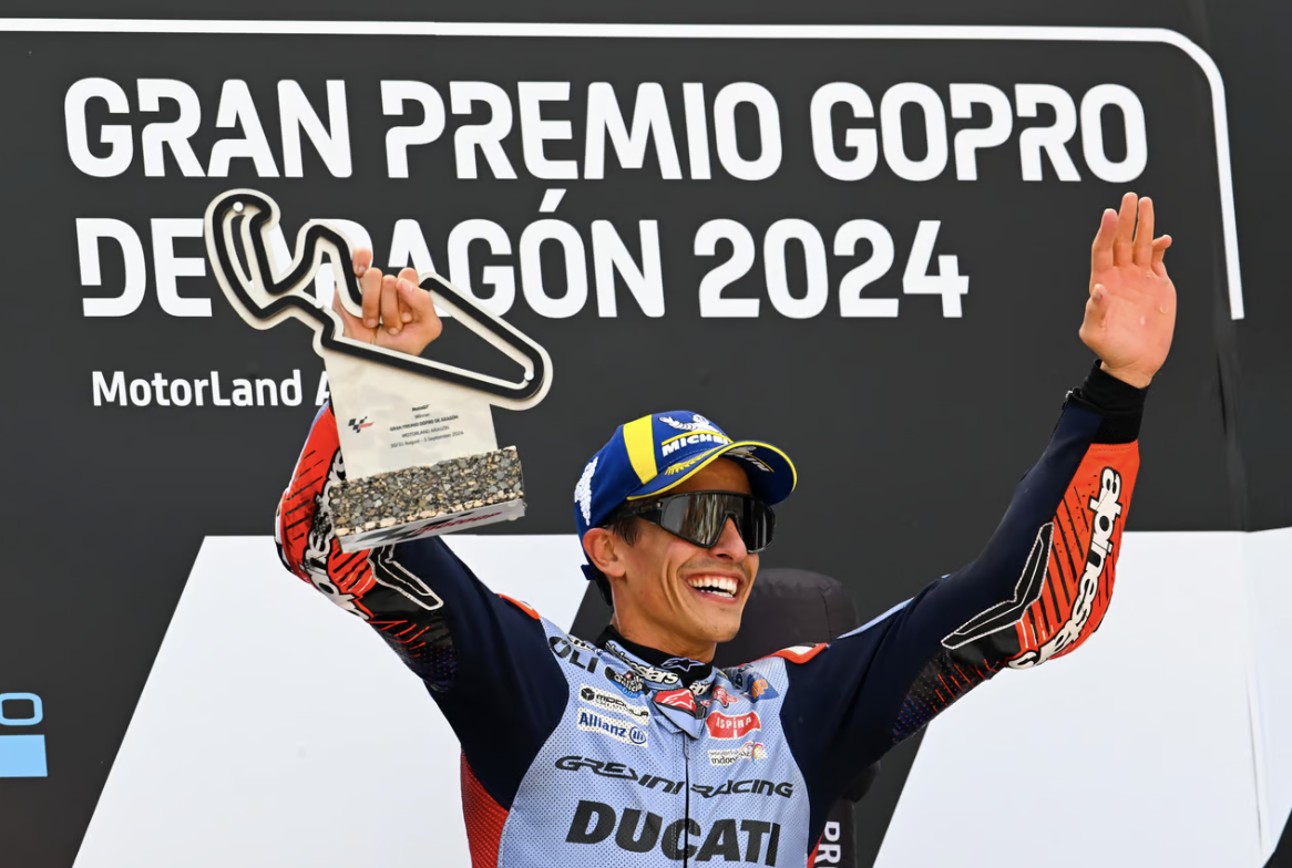 -La primera victoria de Marc Márquez con Ducati y la novedosa invasión a pista fueron el colofón a un fin de semana de éxito. Desde el jueves, MotorLand Aragón se convirtió en el epicentro del motociclismo mundial con las gradas llenas y con un ambiente a la altura de un mundial como MotoGP