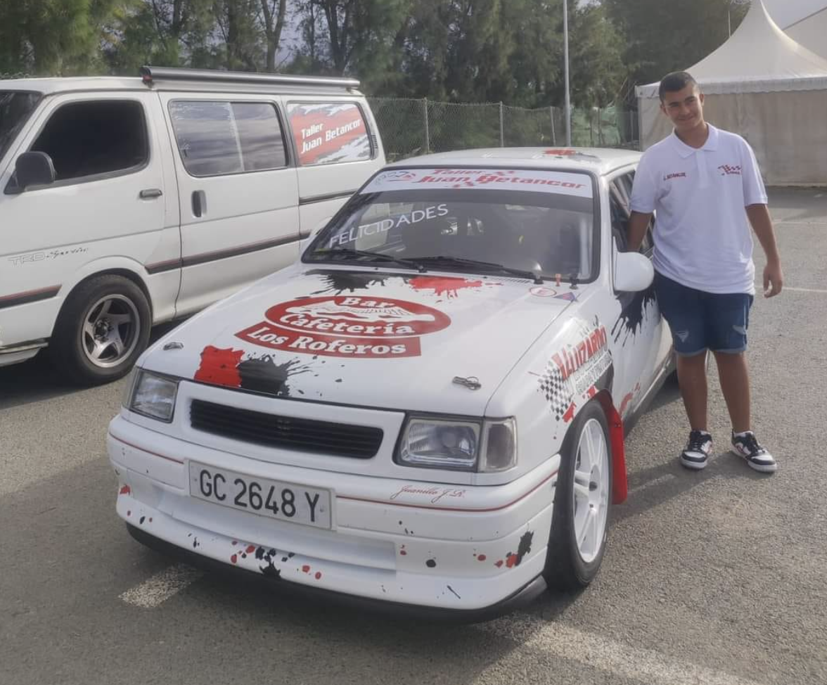 El piloto grancanario Juanillo Betancor se ha mostrado feliz de que su hijo, Juan Betancor, ya tenga la edad para poder competir con el Opel Corsa que le regaló hace un año.