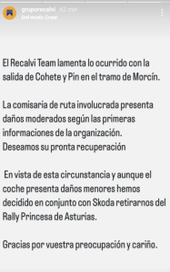 Recalvi y Skoda deciden retirarse del Princesa de Asturias tras la salida de carretera de José Antonio Suárez y Alberto Iglesias
