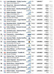 El segundo y día final, el del sábado Loeb era el más rápido en cuatro de los ocho tramos, para conseguir llevarse el triunfo con 10.7 sobre Rossel, 19.9 sobre Bonato y22.0 sobre Quentin Gilbert y C. Guieu (Alpine A110 Rallye GT+), cuartos.