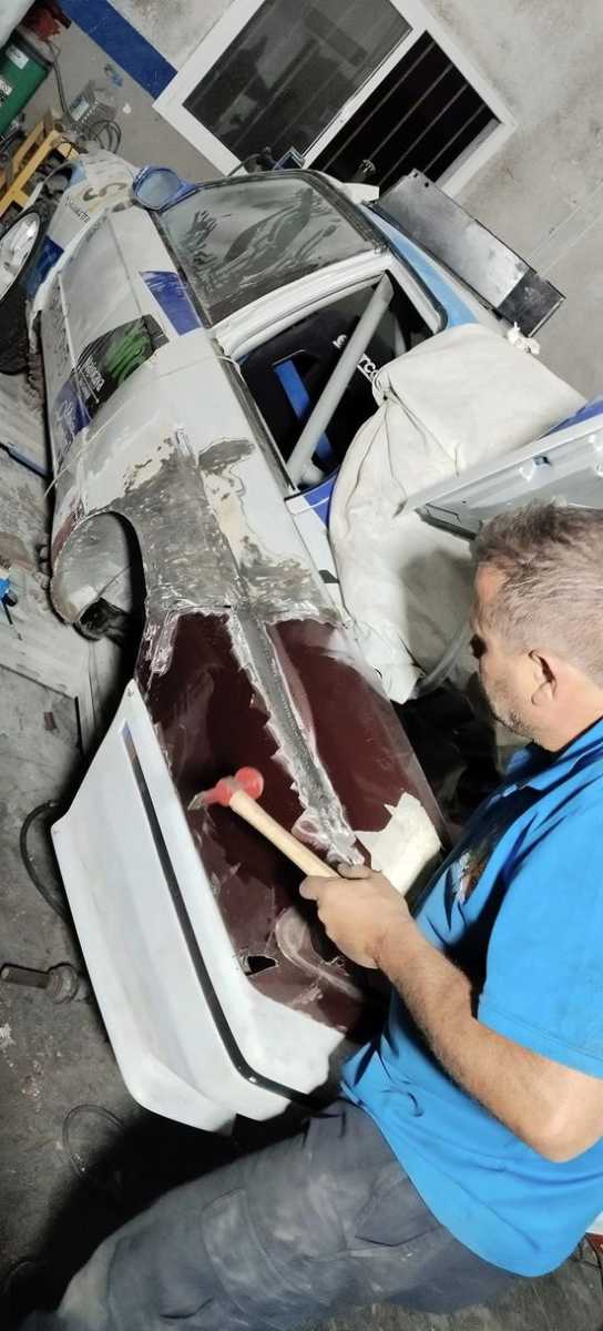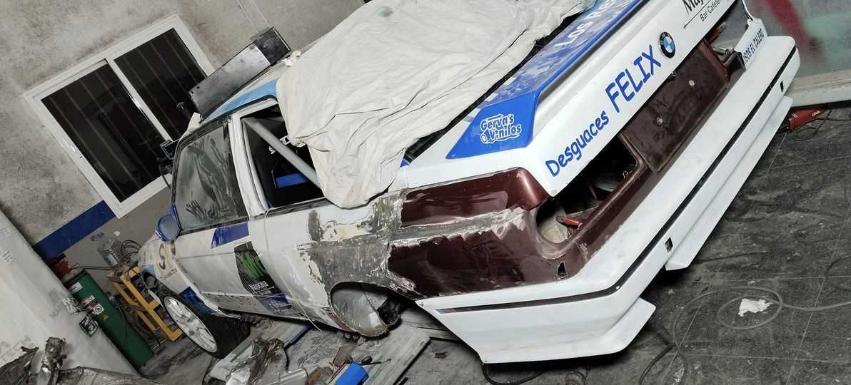 El grancanario Carlos García, el inseparable copiloto de su paisano Miguel Quintino, se ha puesto manos a la obra en el BMW M3 de su amigo tras el accidente sufrido en la pasada Subida a Barlovento para dejarlo arreglado para ver si pueden corre el Rally Villa de Teror.