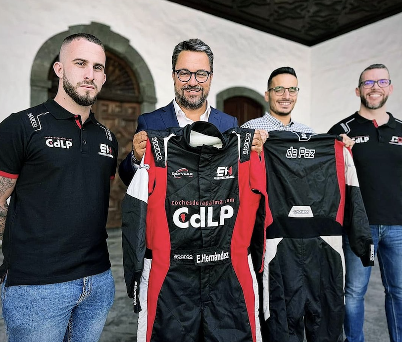 Los palmeros Carlos de Paz y Eduardo Hernández han presentado los nuevos monos con los que correrán en el Rally La Palmas Isla Bonita y las restantes pruebas de la temporada 2024.