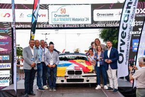 Los exteriores del Cabildo Insular de Tenerife sirvieron de escenario para acoger la esperada ceremonia de salida del quincuagésimo Rallye Orvecame Isla Tenerife Histórico, con 71 vehículos protagonistas en sus dos modalides: velocidad y regularidad. El acto de presentación de todos los equipos se desarrolló este viernes en la Capital tinerfeña, con el arrope de un amplio número de representantes públicos, federaciones, patrocinadores y rostros relacionados con la prueba, encabezados por la presidenta del Cabildo Insular de Tenerife, Rosa Dávila; el director general de Deportes del Gobierno de Canarias, José Francisco Pérez; y el alcalde de Santa Cruz de Tenerife, José Manuel Bermúdez.