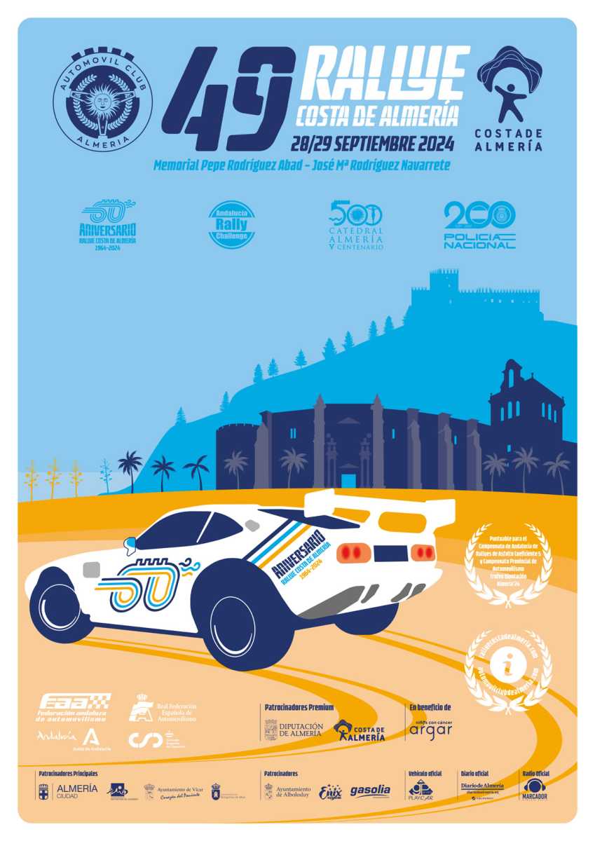 El Rallye Costa de Almería se celebra este año en recuerdo de Pepe Rodríguez Abad y José María Rodríguez Navarrete. La prueba es puntuable con coeficiente 5 para el Campeonato de Andalucía de Rallyes de Asfalto del 2024 y tendrá lugar los días 28 y 29 de septiembre.