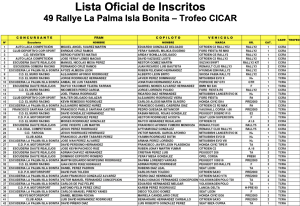 Publicamos la lista de Inscritos del 49 Rallye La Palma Isla Bonita, prueba valedera para el Campeonato de Canarias de Rallys 2024.