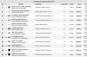 Lejos de los anteriores, los ex campeones de Europa, Efrén Llarena / Sara Fernández (Hyundai I20N Rally2), que están a 38.6 de la cabeza en la cuarta plaza, seguidos a 5.3 de Alberto Ordóñez / José Pintor (Skoda Fabia R5), quintos, mientras Álvaro Muñiz / Néstor Casal (Citroën C3 Rally2) son sextos a 6.7.