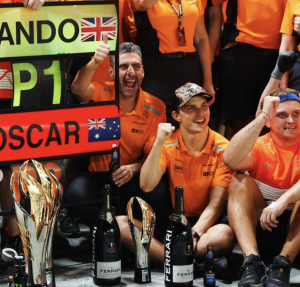 Con su triunfo en el circuito urbano de Marina Bay, Norris, que partió desde la pole, encabezó un podio en el que le acompañaron el tricampeón del mundo, que redujo el daño con un segundo puesto a casi 21 segundos del ganador, y el otro piloto de los coches ‘papaya’, el australiano Oscar Piastri (McLaren), tercero.