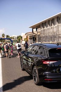 – El Škoda Enyaq, vehículo 100% eléctrico, acompañó al pelotón de ciclistas durante el recorrido de 6 kilómetros