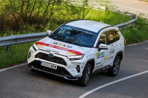 Dentro de la categoría de híbridos enchufables, quienes llegan líderes a Canarias son los extremeños Ángel Santos y su copiloto Mario Osma de Toyota Kobe Motor. Con su Toyota RAV4 Plug In, vencieron en Mallorca y fueron segundos en las pruebas de Castellón, Llanes y Coruña.