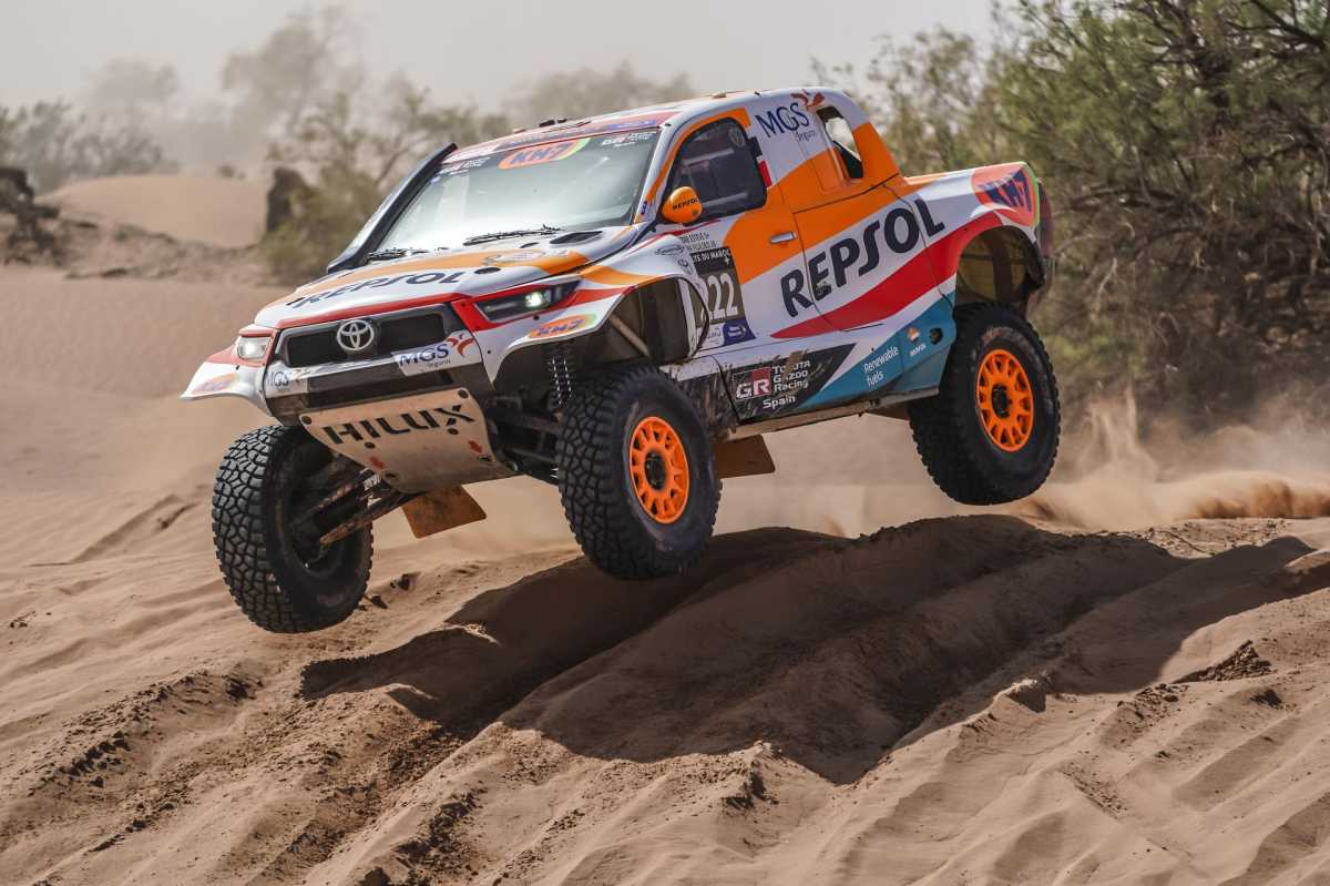 No ha sido nada fácil, porque las dunas del erg Chegaga eran complicadas, estaban muy cortadas por detrás. Esta parte de arena era uno de los ingredientes principales de una etapa que también incluía muchas pistas de tierra y piedras. «La especial ha sido muy bonita porque tenía de todo: dunas, ríos secos, fesh-fesh… Estoy contento, porque saliendo tan atrás hemos sido capaces de adelantar posiciones y hemos corrido mucho, sobre todo al final, en una pista muy rápida de unos 20 kilómetros. Me he encontrado muy bien», insiste el piloto del Repsol Toyota Rally Team.