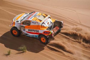 -El Repsol Toyota Rally Team se clasifica en la 13ª posición de la categoría Ultimate, en una especial de 325 kilómetros sobre terrenos de todo tipo.