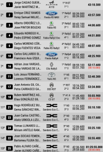 A pesar de empezar de manera discreta y que la lluvia les hiciera perder medio minuto, la victorias de dos de las tres especiales en el bucle final propiciaron que los canarios Enrique Cruz y Yeray Mujica (Ford Fiesta Rally2) terminaran segundos de la general, a 39.0 de la cabeza y a 3.1 de Ordóñez y Pintor, que tras dos cuartos puestos en las pruebas del SCER en Asturias, Rally Princesa y Villa de Llanes, logran un merecido y luchado podio en la cita del CERA.