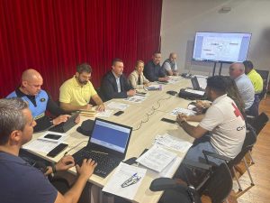 Previamente a la presentación, la organización y todos los representantes de los diferentes organismos, equipos de emergencia, sanitarios, policías, etc, se reunieron para la coordinación de la seguridad de la prueba.