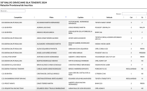 Publicamos la relación Provisional de Inscritos del 50º Rally Isla Tenerif, prueba que se disputará este próximo fin de semana.