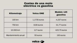 Los datos, comparados a partir de los consumos de la Velca ONE, elegida como la moto del año por la comunidad eléctrica, frente a los equivalentes de combustión de 125 que hay en el mercado, concluyen que el usuario de la moto eléctrica gasta 1,17 euros para recorrer 100 km, mientras que con un modelo de gasolina es necesario 4,23 euros para esa misma distancia.